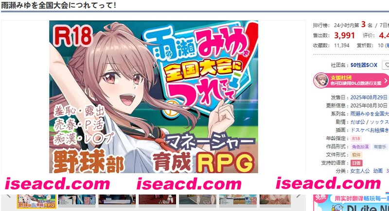 ​ 社团名:#50性器S〇X▫️名称:带雨濑美优参加全国大赛把! ▫️原名:雨瀬みゆを全国大会につれてって! ▫️贩卖日:2025年08月29日 0时 ▫️标签:#3D #AI汉化 #PC #MTool #动态,女主人公,学园,援交,羞耻 作品内容 本作品目前以“抢先体验版”形式发布。 本作品作...