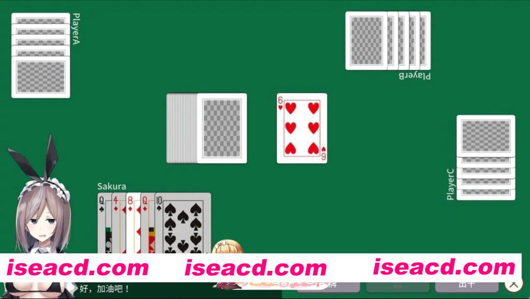 操作樱,与三名客人用纸牌进行对决。