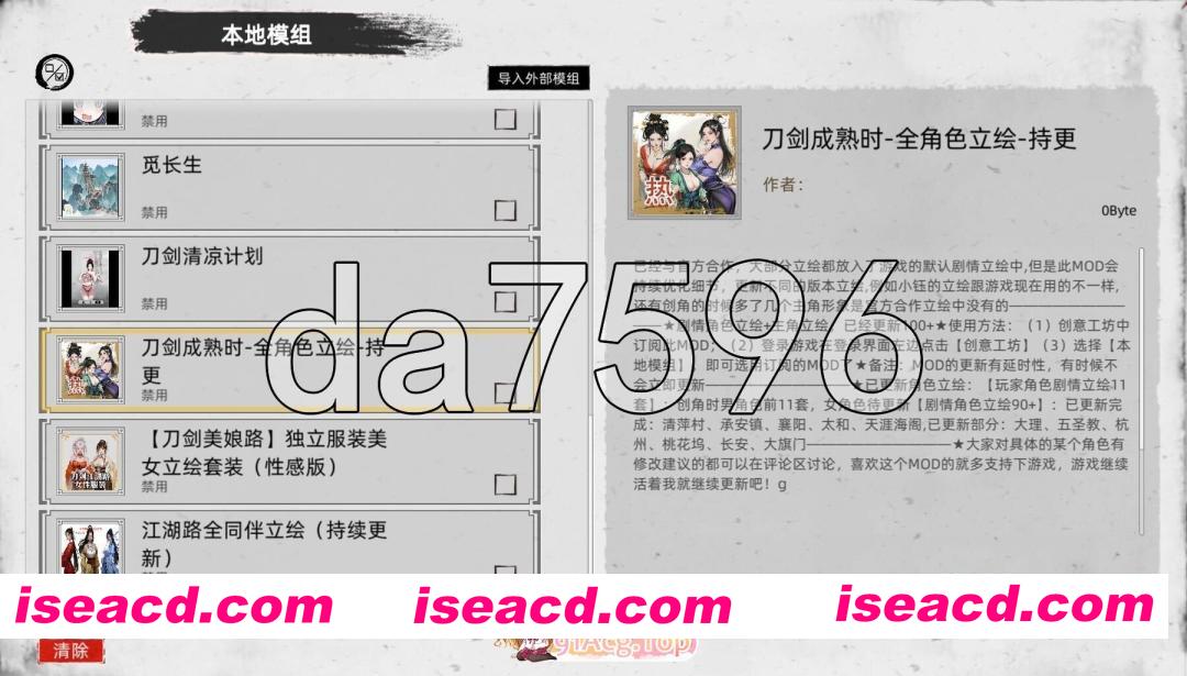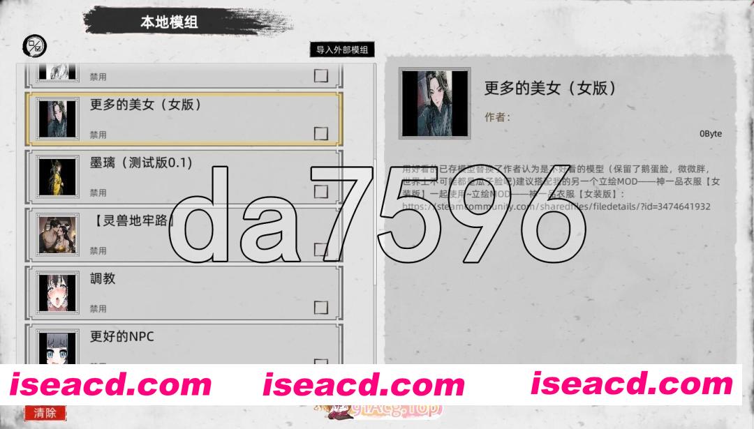 包含了全部角色美化MOD,大量额外女角色MOD(小龙女/杨幂/热巴都有),