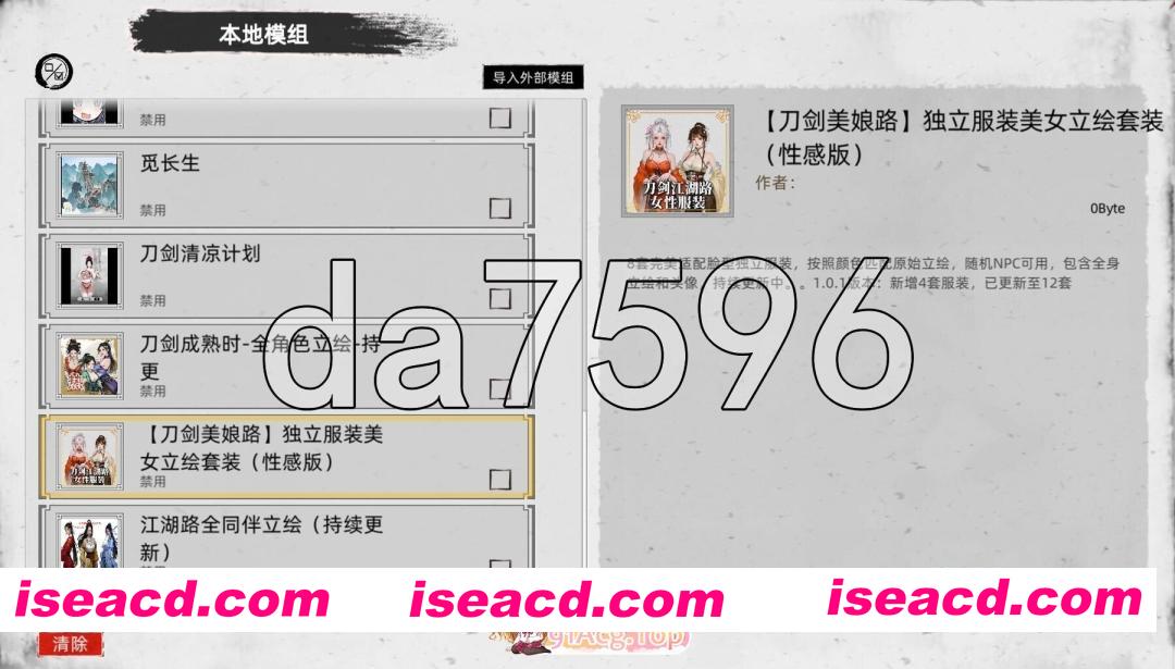 版本为Ver1.0.2.0 整合了大量创意工坊的游戏MOD,成功把武侠游戏变成调教女侠游戏