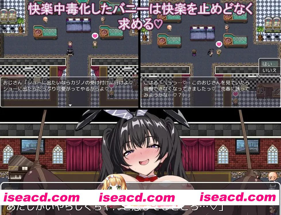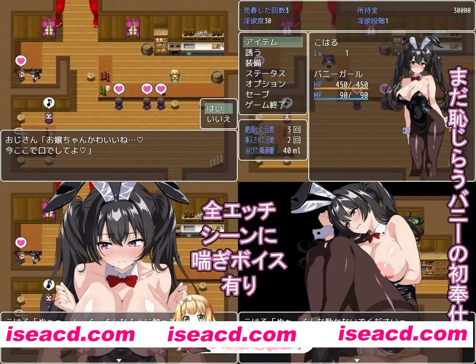 黑发巨乳兔女郎,在酒馆、街头、赌场卖身的同时,上演羞耻满载的侍奉Play与沉沦快感——无战斗、实用特化的合意性爱RPG!