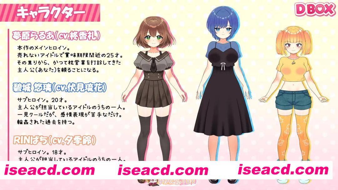 游戏概述: 在临近26岁之际,默默无闻的处女偶像企图出卖身体以求逆转命运的故事 你是偶像行业的制作人。 偶像行业鱼龙混杂,而你正是那种为达目的不惜“安排陪睡”“背后交易”、无所不为的“恶德制作人”。 曾被你提议陪睡却拒绝的偶像——梦原萝拉,此刻正来到你的面前。 故事,就从这里开始。
