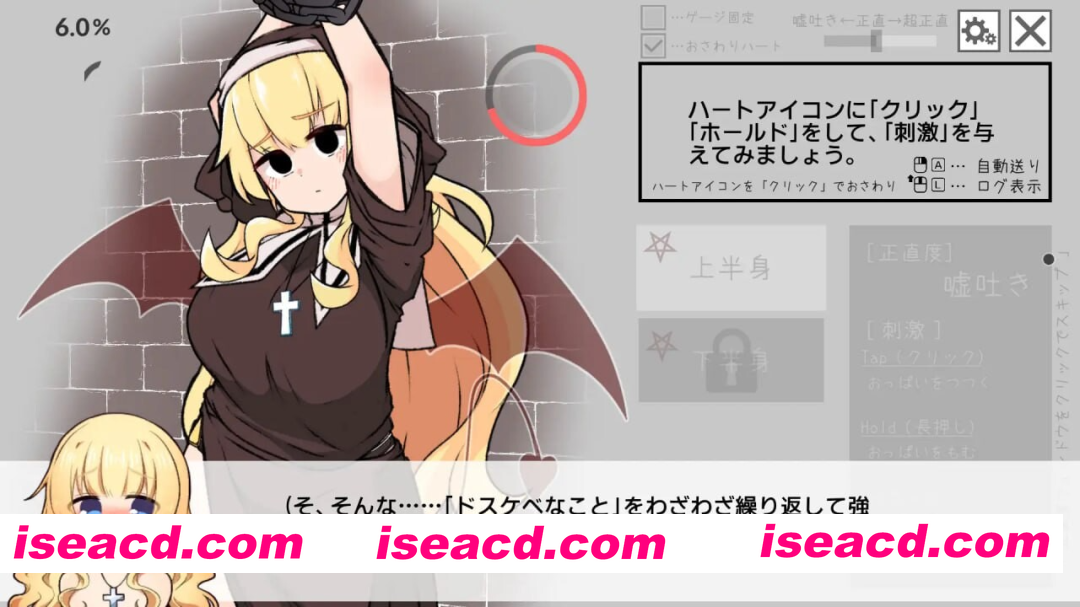 社团名:#820陶芸工房 名称:撒谎恶魔与正直修女 原名:嘘吐き悪魔と正直シスター 版本:v1.0.1 贩卖日:2026年02月06日 0时 标签:#SLG #生肉 #PC #动态 ,触摸,抚摸 ,修女 ,玩具 ,沉迷,快乐,羞耻 游戏概述: 针对附身于修女的「说谎恶魔」,通过触摸让其身体变得「诚实」并加以惩戒的「驱魔师模拟ADV」 这是一款融合「触摸Live2D × 修女 × 附身题材 × 羞耻心 × 背德感」的色情FLASH风格游戏! ・动作总数:总计300种以上! ・Live2D模型:共5个(剧情用3个+附加2个)! ・插画数量:3张(不含差分) ・预计游戏时长:1个半小时至2小时左右 在本游戏中,通过循环「色情的PDCA循环」,采取一种持续推动游戏体验改善与「可冲度」提升的游戏体验管理手法。 “色情 PDCA 循环” (1) P…Push/Pull(触摸) 通过 “点击” 或 “按住(长按)” 进行 “触摸”。 (2) D…Dosukebe(色狼) 被 “触摸” 后,会根据当时的 gauge 量和 “诚实度” 做出 “色狼反应”。 (3) C…Change(身体状态发生变化) 在做出 “色狼反应” 的同时,gauge 量会上升,“诚实度” 也会发生 “变化”。 (4) A…Action(采取下一步行动) 随着 “诚实度” 发生 “变化”,剧情会推进,进而进入 “下一步行动”。 (※此时会再次回到 (1)) “本游戏推荐点排名介绍” 下面将以排名的形式为大家介绍本游戏的推荐之处!! (排名内容大致如下↓↓) ・[第 3 位]…… 重视 “实用性”!! ・[第 2 位]……“对话场景” 很有趣!很可爱!不会腻! ・[第 1 位]……“修女” 很色情!! 那么,从第 3 位开始为大家详细介绍! [第 3 位]…… 重视 “实用性”!! 实现 “非惯用手自由模式”! 可以单手玩这款游戏! ※无需握鼠标! ※惯用手可以自由活动! 第 1 章中有详细说明。(“体验版” 也包含该功能和说明) 收录重视 “实用性” 的 “后日谈部分(EX)”! “后日谈部分(EX)” 的内容包括 “偷窥” 和 “3P (?)”。(※两个 EX 使用共同的 Live2D 模型) [第 2 位]……“对话场景” 很有趣!很可爱! 不仅在 Live2D 上,在剧情,特别是 “对话” 方面也下了很大功夫。 (比如这类 “羞耻场景” 等) “选项” 也做得十分丰富,大家可以根据喜好更改章节内的台词。 (※不会继承跨章节的选择内容) 此外,不得不提的是这个可爱的 SD 头像!! 表情会不断切换,所以即使是只有台词的部分,看的时候也不会觉得腻! SD 头像有这样的表情、那样的表情,甚至还有…… 那样的表情!?! [最突出特点]…「修女」太色情了!! 你将扮演能听见人心声的「驱魔师」, 一边聆听她「诚实」的心声,一边驱除「说谎恶魔」。 乍看之下是纯真无瑕的「修女」。 表面上是虔诚的「圣职者」,但偷听其心声后,却发现她竟是夜夜沉溺情欲的「性职者」…… 她似乎一直通过「说谎」来守护自己的秘密, 然而正是这些「谎言」引来了「说谎恶魔」,导致她被恶魔附身了!! 那么,身为修女的她今后会变得如何呢!?! 她未来还能继续安然担任修女吗?!…… (不过话说回来,这位修女居然是金发碧眼长发,胸部还这么丰满……) (顶着这种「像色情游戏角色」的外貌和诱人巨乳,真的能胜任「圣职者」吗?……)