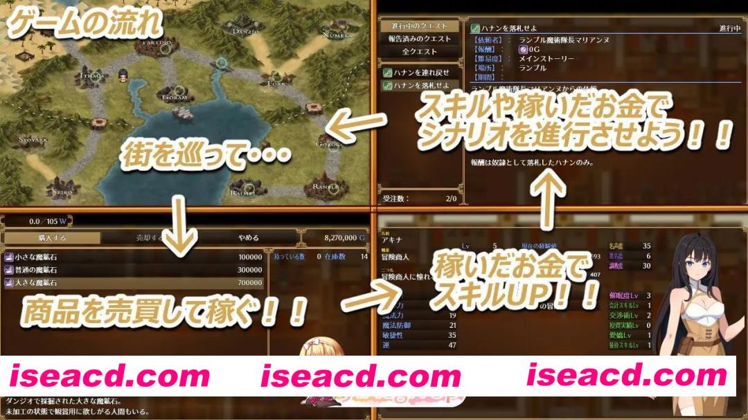 这是一款操控亚希奈通过买卖商品赚钱推进剧情,并触发各种H场景的RPG游戏。游戏中登场的多位女性角色(包括亚希奈在内)都将逐渐被卷入欲望的漩涡。